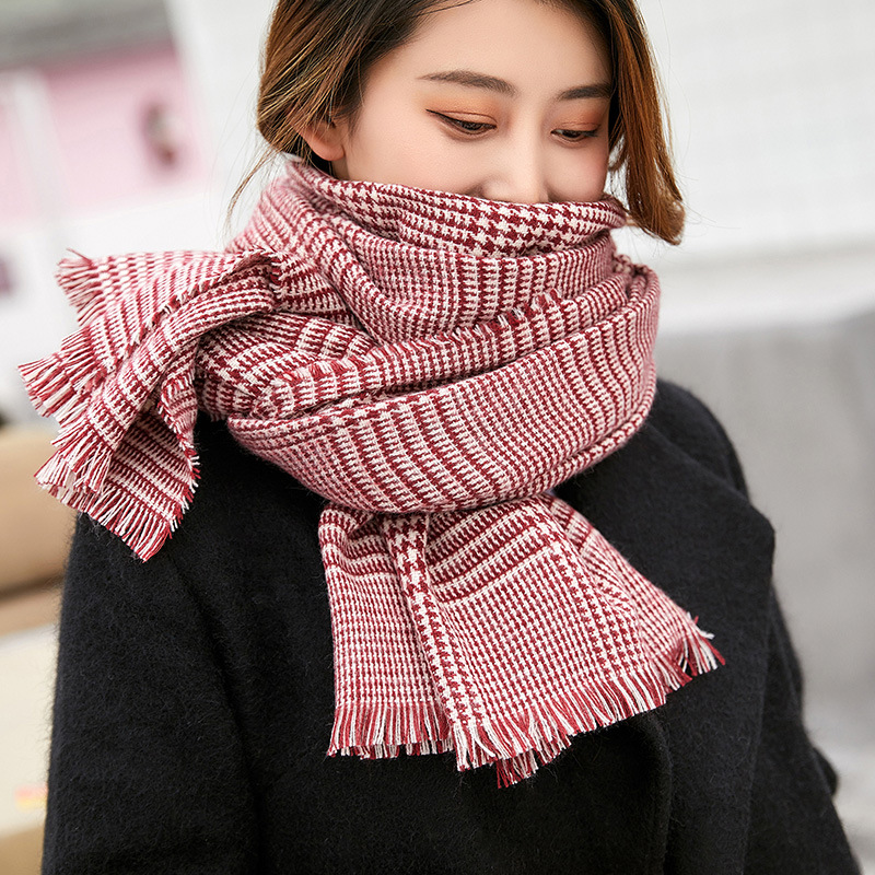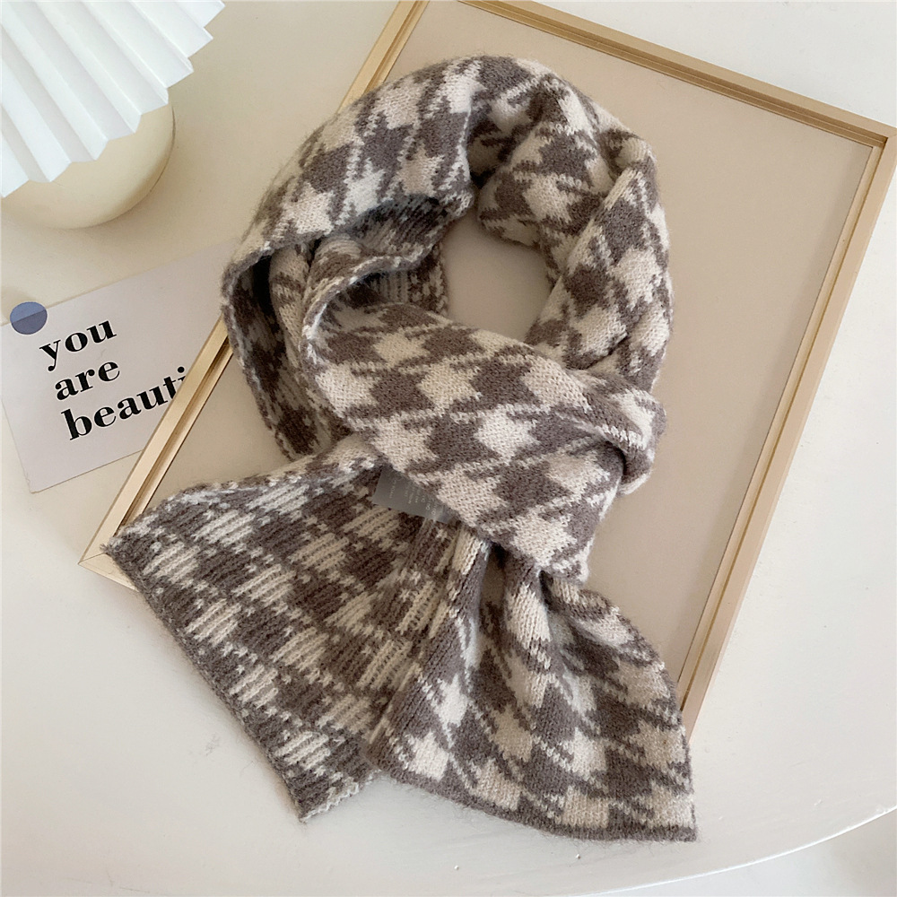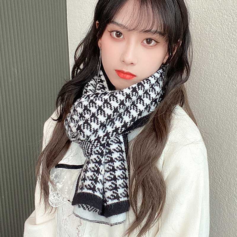 韓国版ニットマフラー女性冬2021新千鳥格水波紋つなぎストール両面保温マフラー