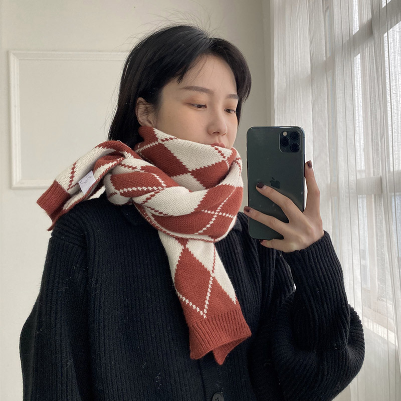 2021新型マフラーの女性冬の韓国版のひし形はネットの赤い学生の女性の首を囲むカップルの厚い保温のマントを合わせます。