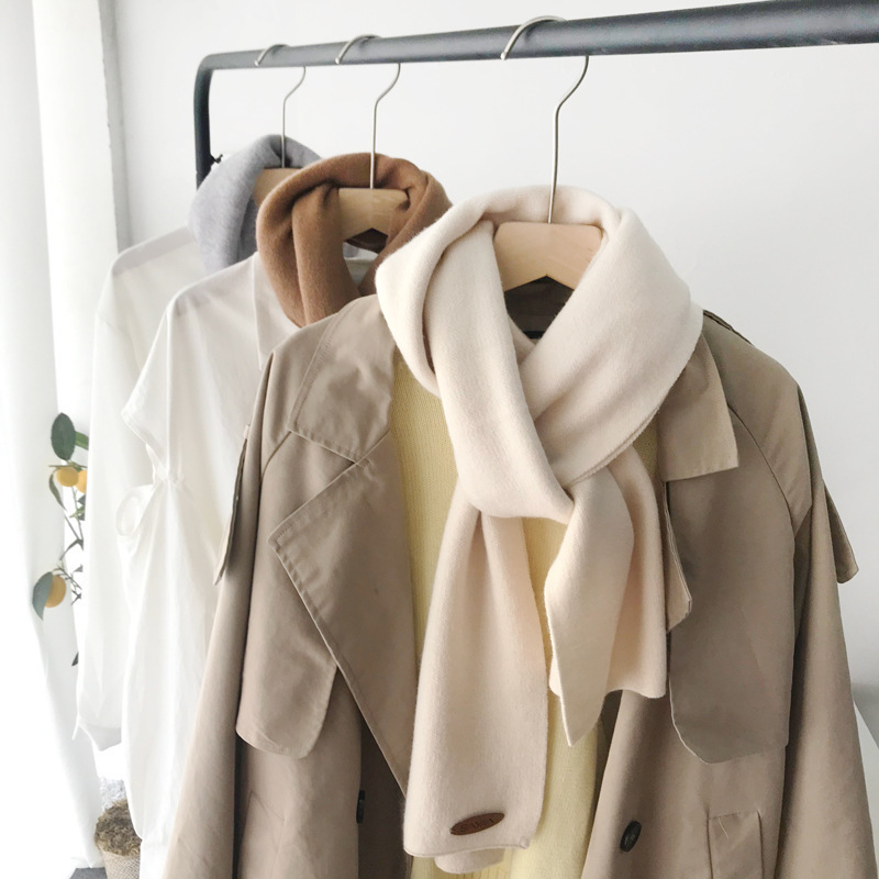 ウールを含む純色のマフラー女性冬の新型韓国版百合高級感学生保温秋冬白色マフラー