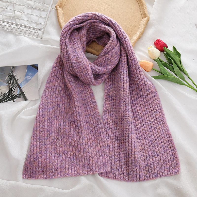 純色の柔らかいモチとしたシンプルなマフラー女性冬の韓国版百合ins学生カップル保温ニット毛糸マフラー