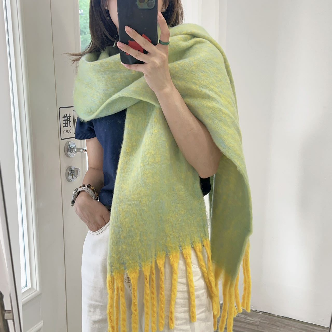 外はフリンジストールと秋冬の新型馬海毛のマフラーを掛けています。女性は暖かくて快適です。