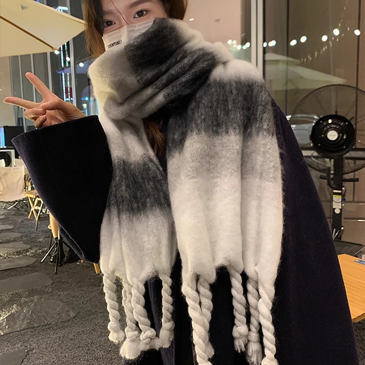 韓国系ファッションの両面は肌の保温のフリンジマフラーを使うことができます。