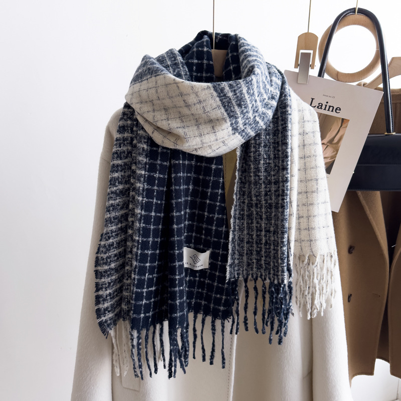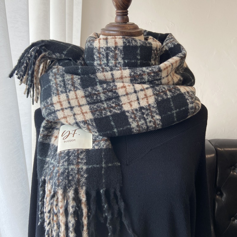 新しいマフラー秋冬の雰囲気感のある格子縞のフリンジ保温男女カップルは、ロングタイプのマフラープレゼントを厚くした