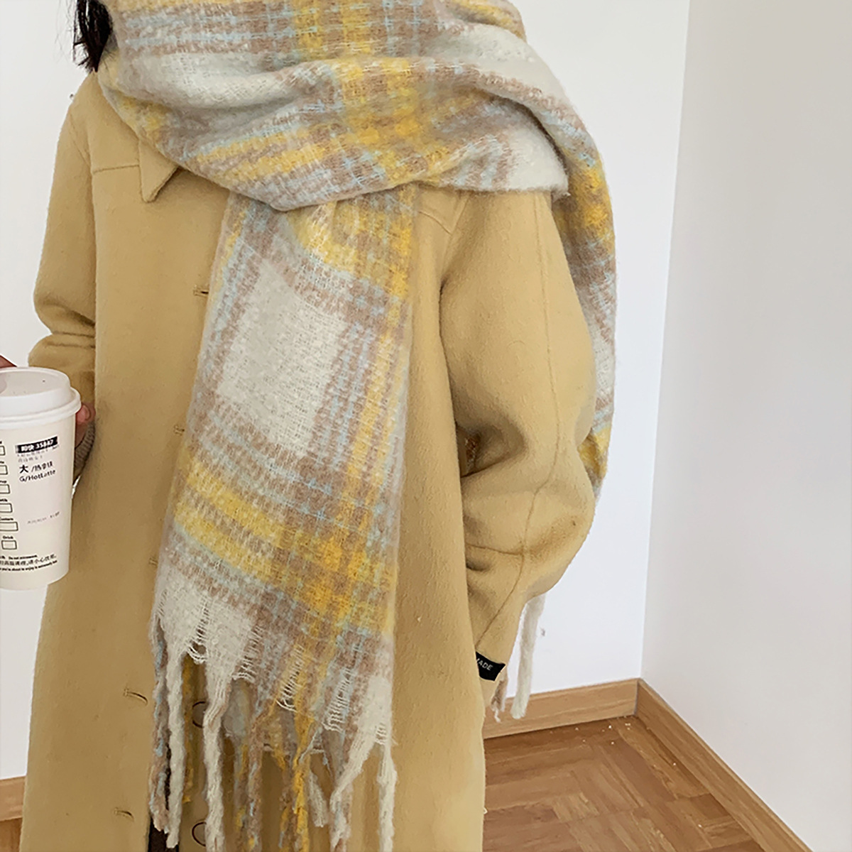 大版のネットの赤い同モデルのマフラーの女性の秋冬の韓国版の百合の格子の流蘇の学生は首の保温のカップルのマントを囲みます。