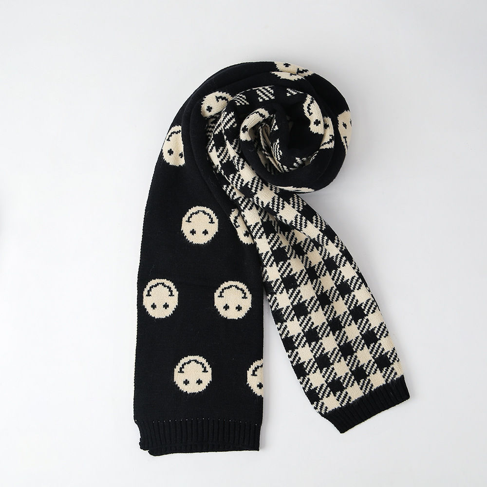白黒千鳥格ins毛糸マフラー女性冬2021ファッション韓版笑顔百合学生マフラー