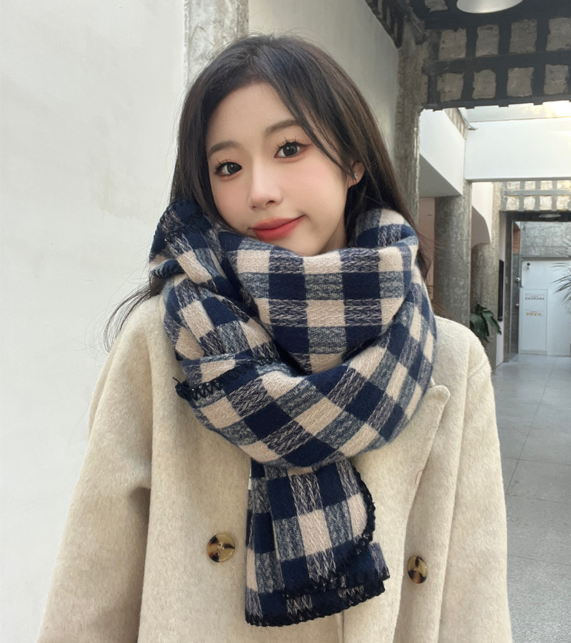 マフラーの女子学生は冬の韓国版の百合のマントの馬海毛の学生に彼女の復古の保温の格子のマフラーを送ります。