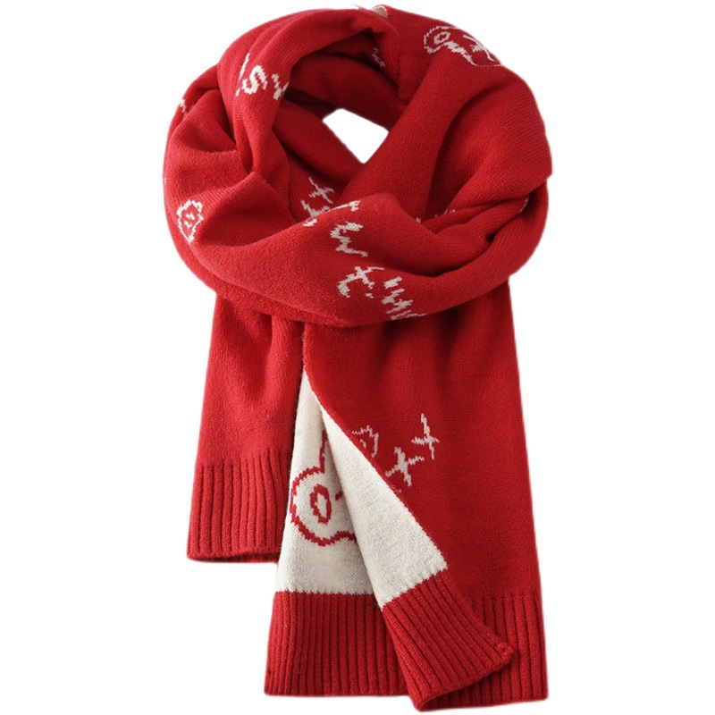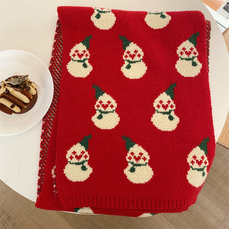 クリスマスのマフラーの女性の冬の厚い保温のニットのマフラーの新年の赤いマフラーの学生のクリスマスの雪だるまの祝日
