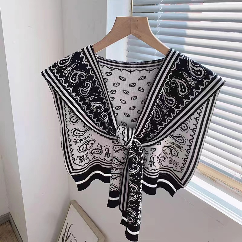 新型のストールの外は女性の肩の韓国版の春秋のニットの装飾のシャツを掛けて肩の腰の果実の花の偽の襟を掛けます。