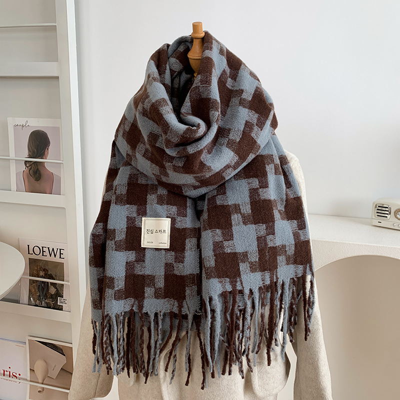 保温マフラー秋冬2023新型韓国版百合首流蘇格子厚手ロングストール