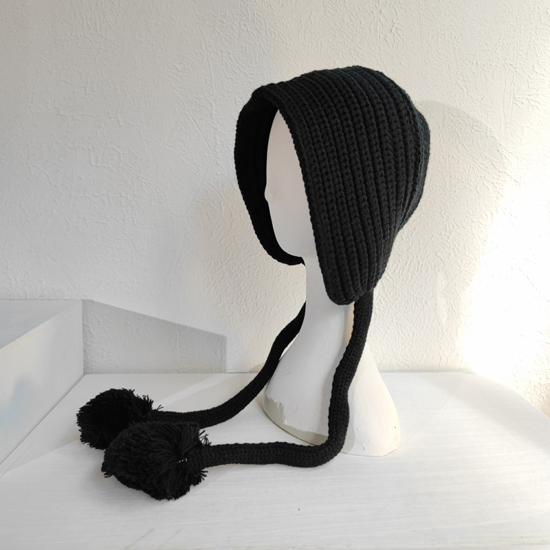 黒い長いお下げの帽子の双球の毛糸の帽子の雷鋒の帽子の子供の秋冬の韓国版の耳の保温のニットの帽子
