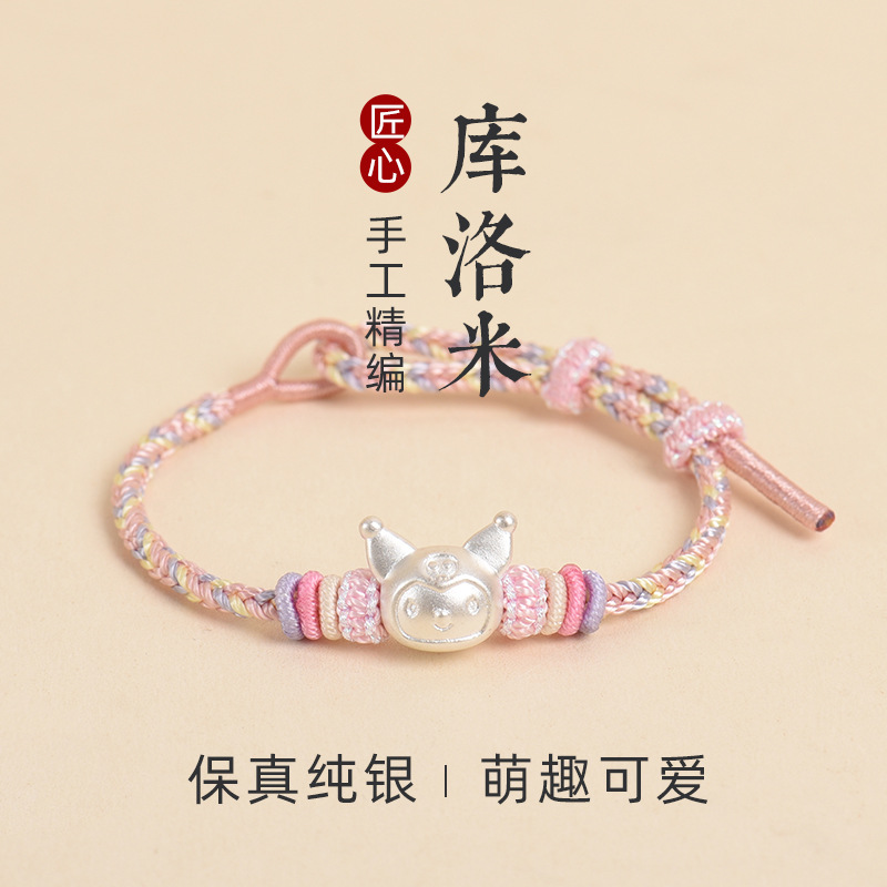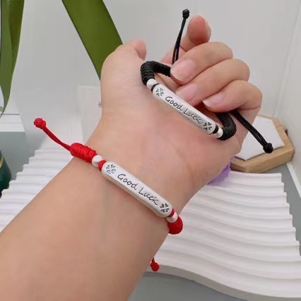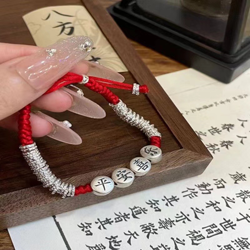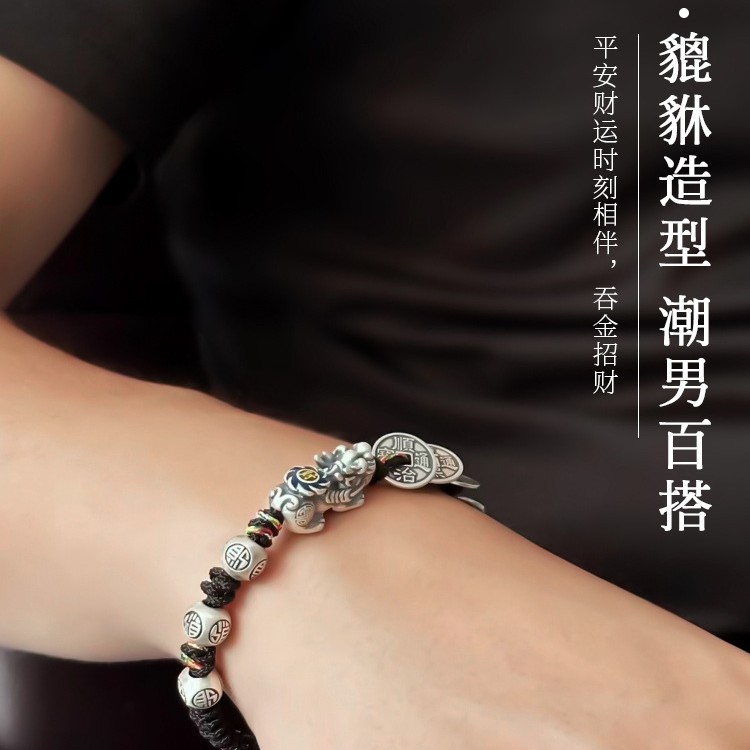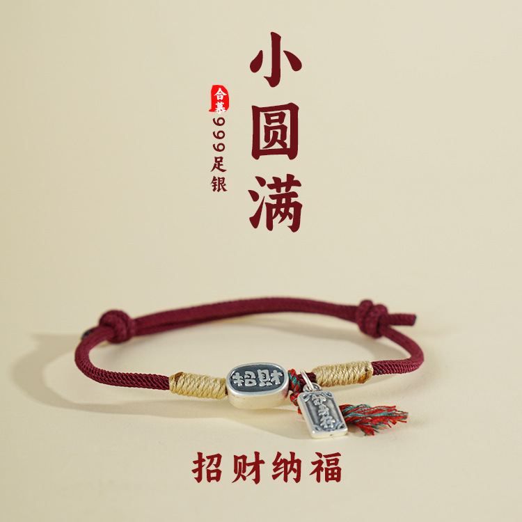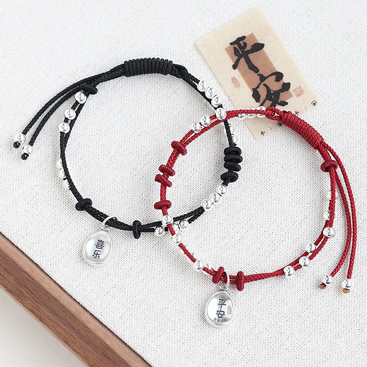 足銀999平安喜楽本命年純銀ブレスレット女性カップルの編み上げ転送ビーズ手綱生放送卸売り