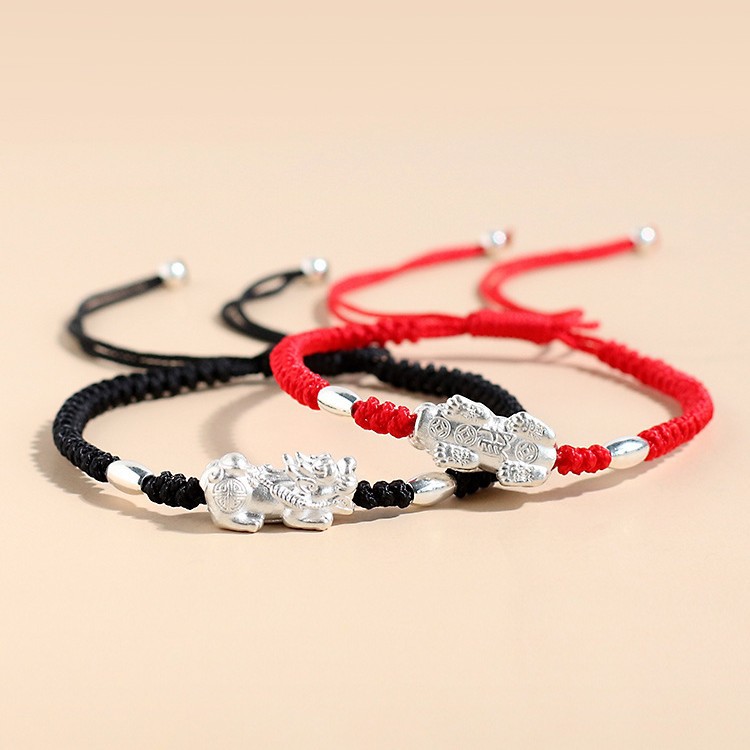 純銀3dハード銀S999穿孔十二生肖アクセサリーdiy編みブレスレット赤縄路通部品卸売り