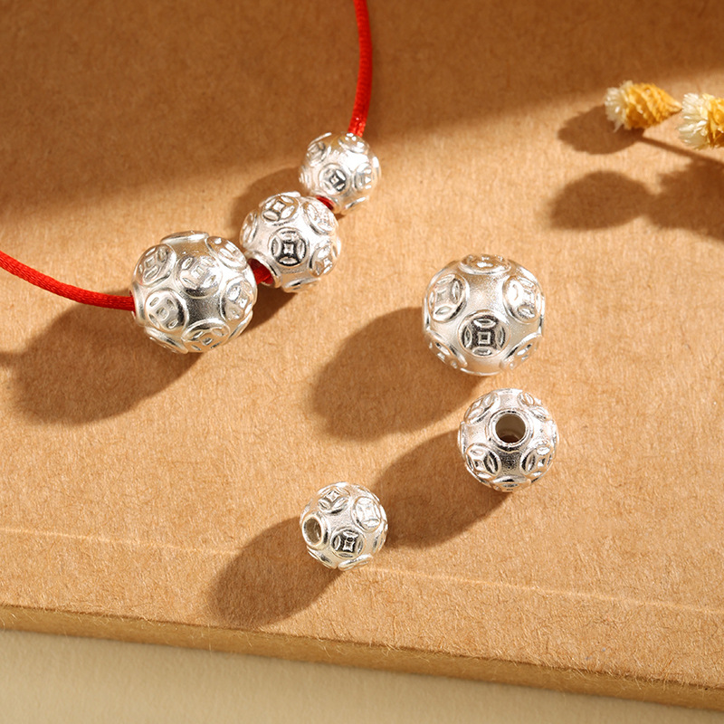 S999純銀転送ビーズ金銭ビーズサイズdiyビーズ3dハード銀路通アクセサリー足銀コイン卸売り