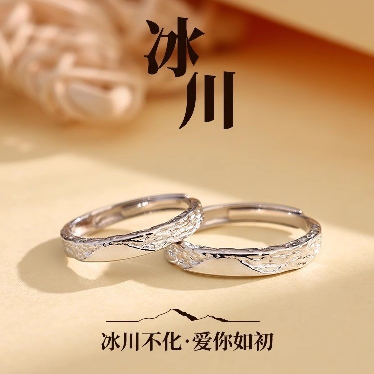 S999足銀甘食氷河カップル対戒小衆デザイン感純銀開口指輪高級感シンプル彫刻
