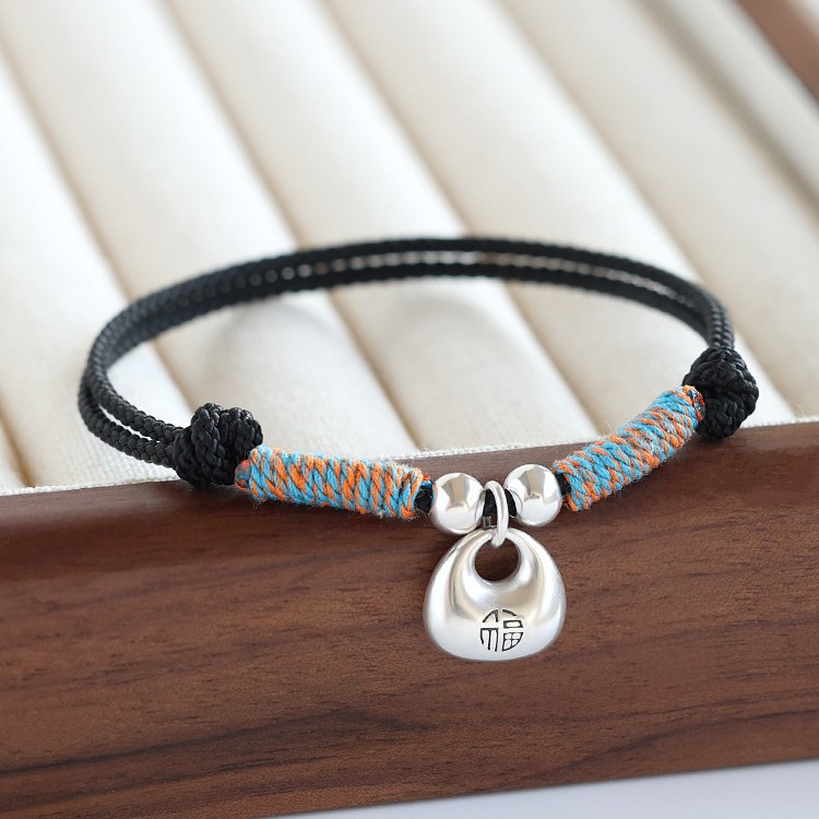 銀坤坤平安鎖純銀ブレスレット女性中実小衆カップル本命年紅縄プレゼント銀飾り手串卸売り