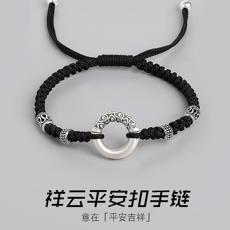 足銀999盤巻き手串平安喜楽純銀国潮風復古ブレスレット女性手編みカップル手ひも