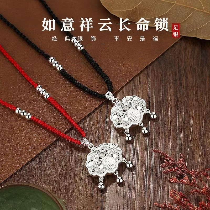 足銀999福錠ペンダント純銀長命錠透かし彫り祥雲如意平安錠ネックレス生放送爆金卸売り