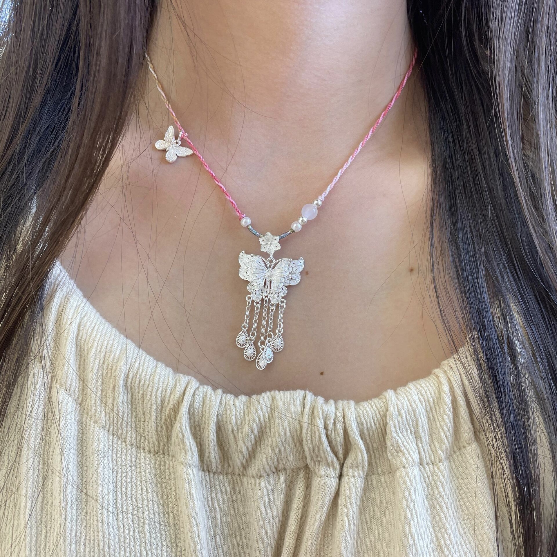 足銀999花糸蝶ネックレス女性diy編み手綱流蘇純銀ペンダント招財生中継起爆卸売り