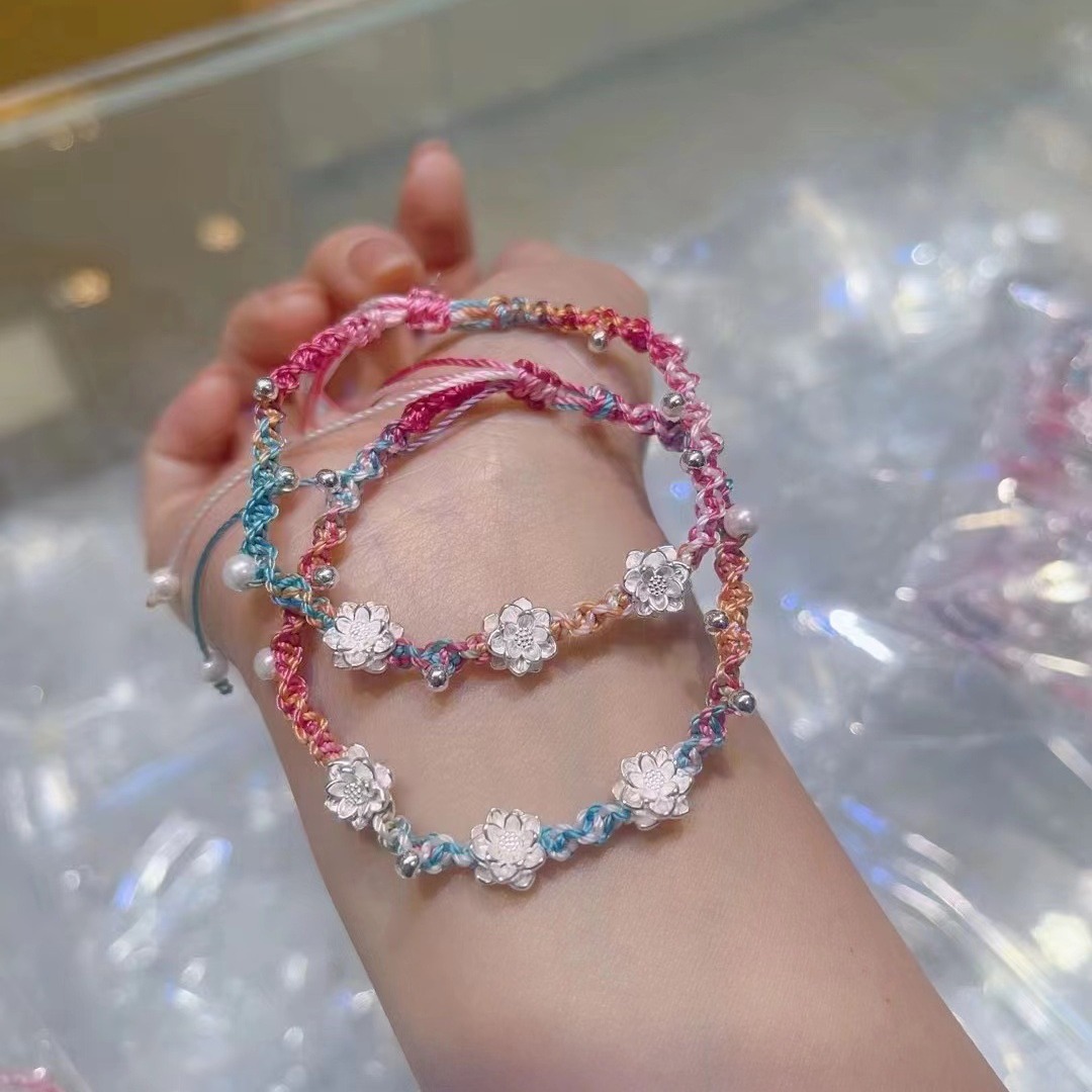 足銀999三生三世蓮花ブレスレット純手編み純銀ペンダントカラーロープ卸売り