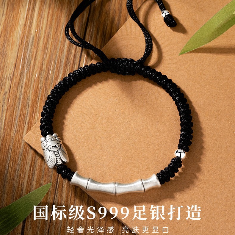 生放送の爆発金節の高昇竹節の純銀のブレスレット999足の銀は手の縄を編んで玉の男性の金の卸売りを回転します。