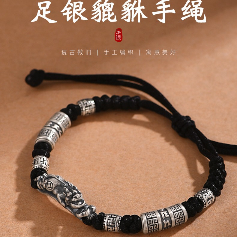 999純銀のピシュピストのブレスレットの男女の潮の金の復古の国風の高級感の手編みの縄の卸売り
