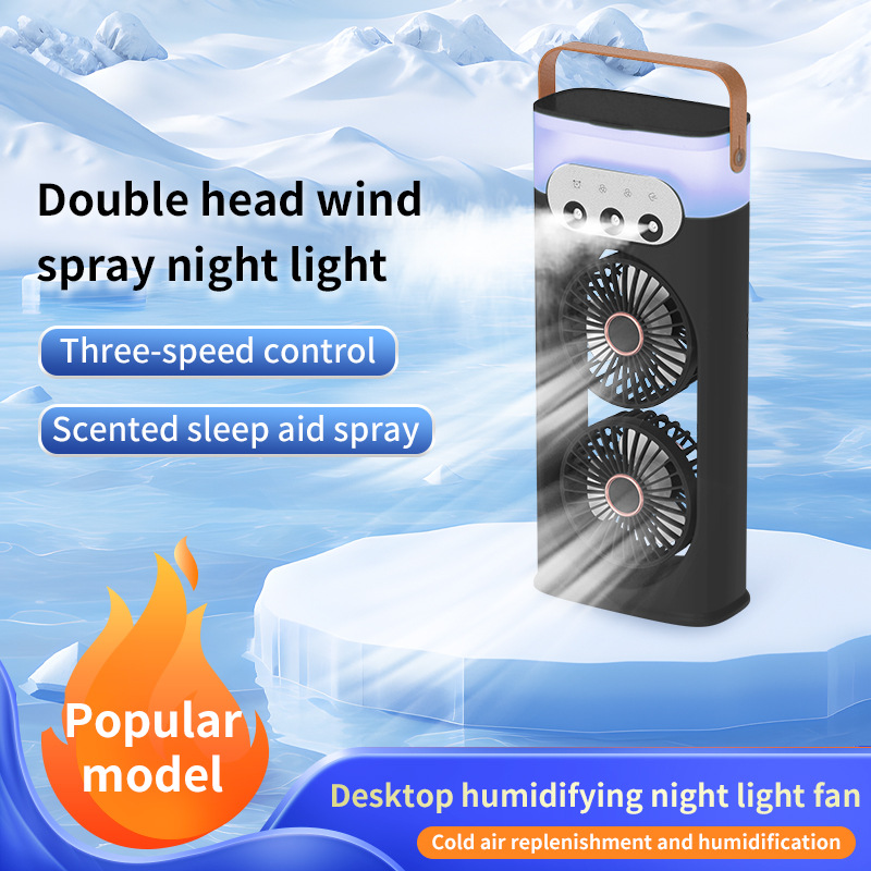 クロスボーダー噴霧水冷扇風機オフィスデスクトップ空気循環扇風機ポータブル加湿二頭扇風機夜灯