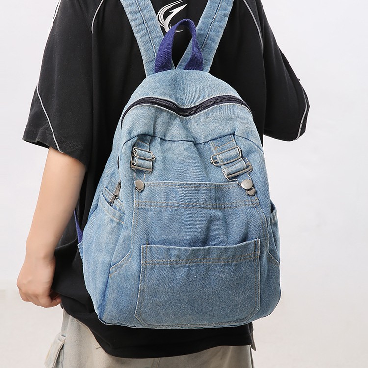 韓国版2025新型デニムのリュックサックの女性の大容量の日常は中学校の高校の学生のランドセルの男性を組み合わせます。
