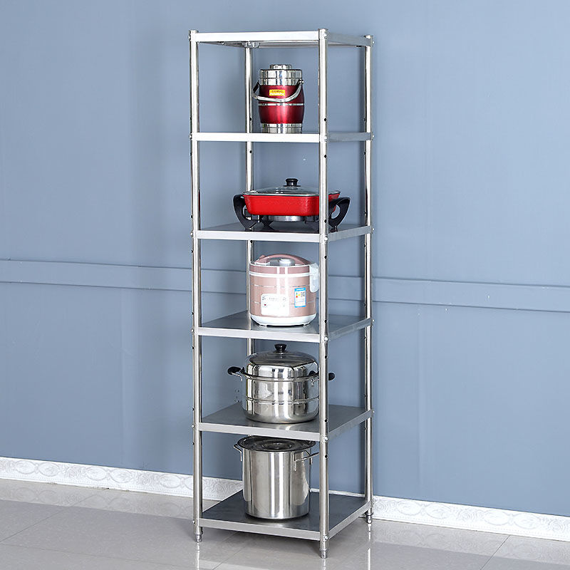 ステンレス製の床置き棚は家庭用キッチン棚の多層電子レンジオーブンの鍋棚を厚くして貯蔵棚を収納する