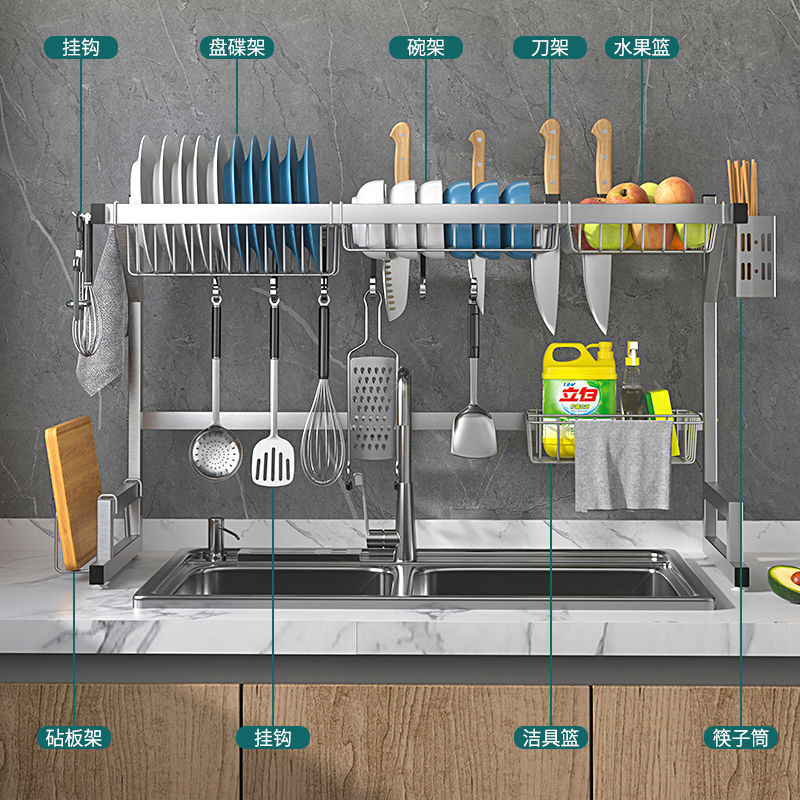 多機能水槽の物置棚のステンレスの台所の碗の皿の排水棚の池の上の碗の皿の収納棚の多層のメーカー