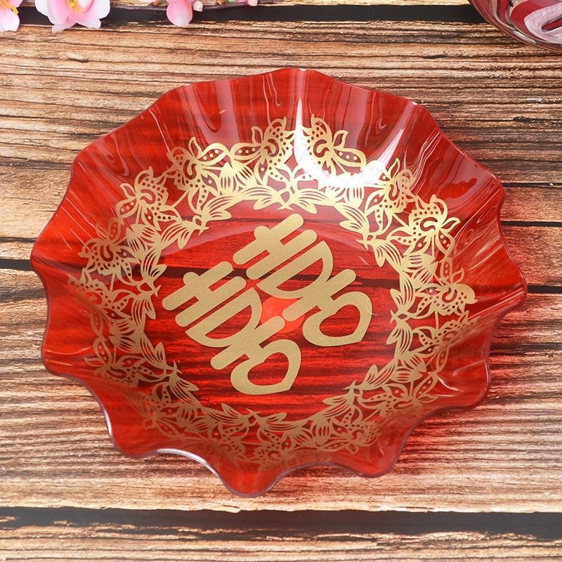 果物の皿は結婚祝い用品の結婚式の家庭用の赤いプラスチックのアクリルの乾燥した果物の種のアイデアのキャンディーのお菓子の皿を結びます。