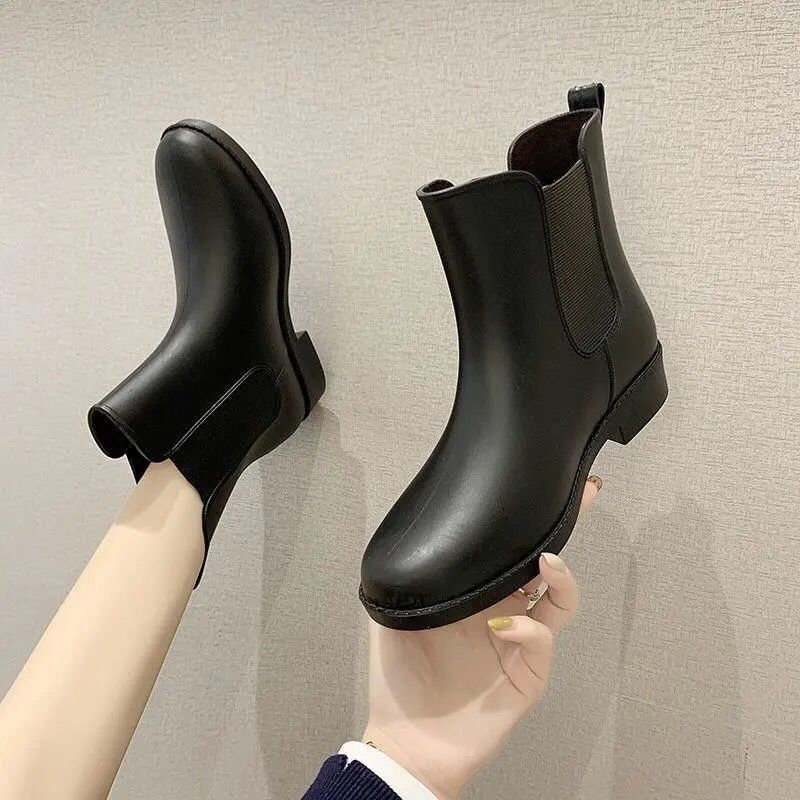 雨靴の女性は女性ファッションの四季の仕事靴を履いています。