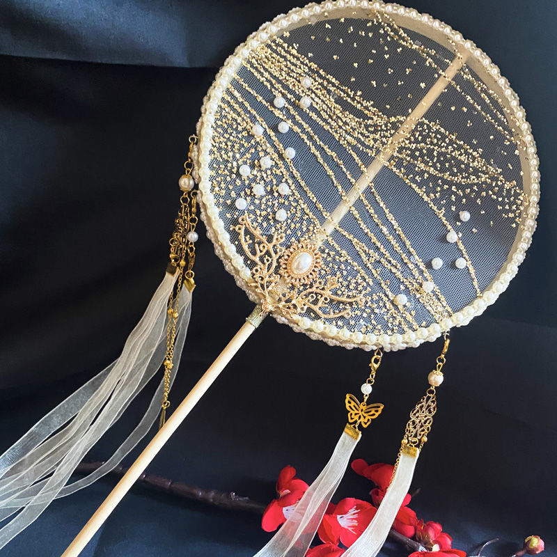 扇子刺繍完成品扇子リボンオリジナル刺繍完成品団扇撮影道具ダンスアクセサリー児童掌扇