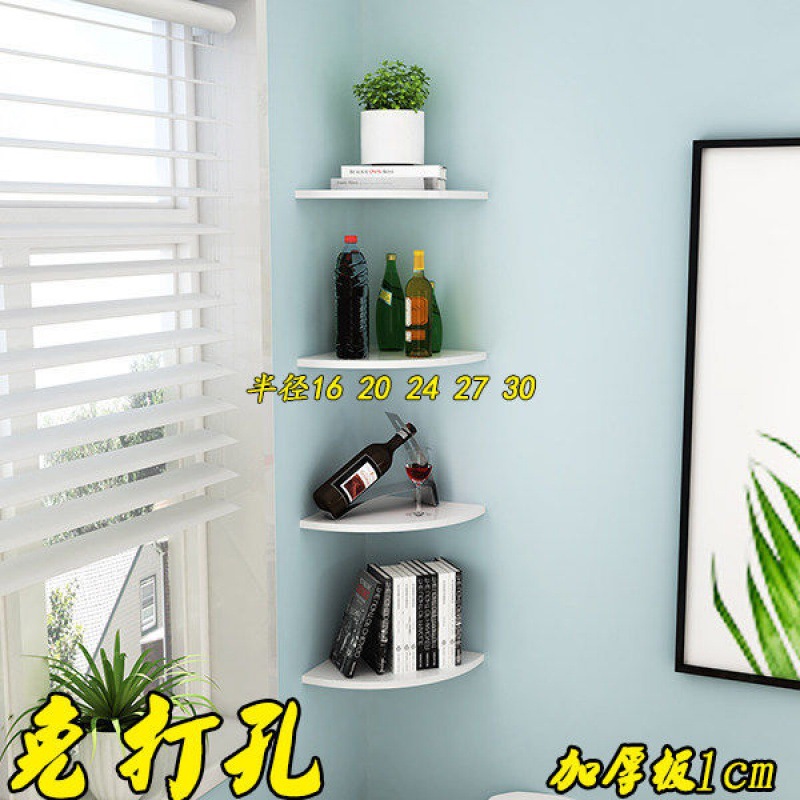 三角棚の壁の置物の支柱の壁の装飾の寝室の衛生的な収納棚は穴を開けないで円弧板を打ちます。