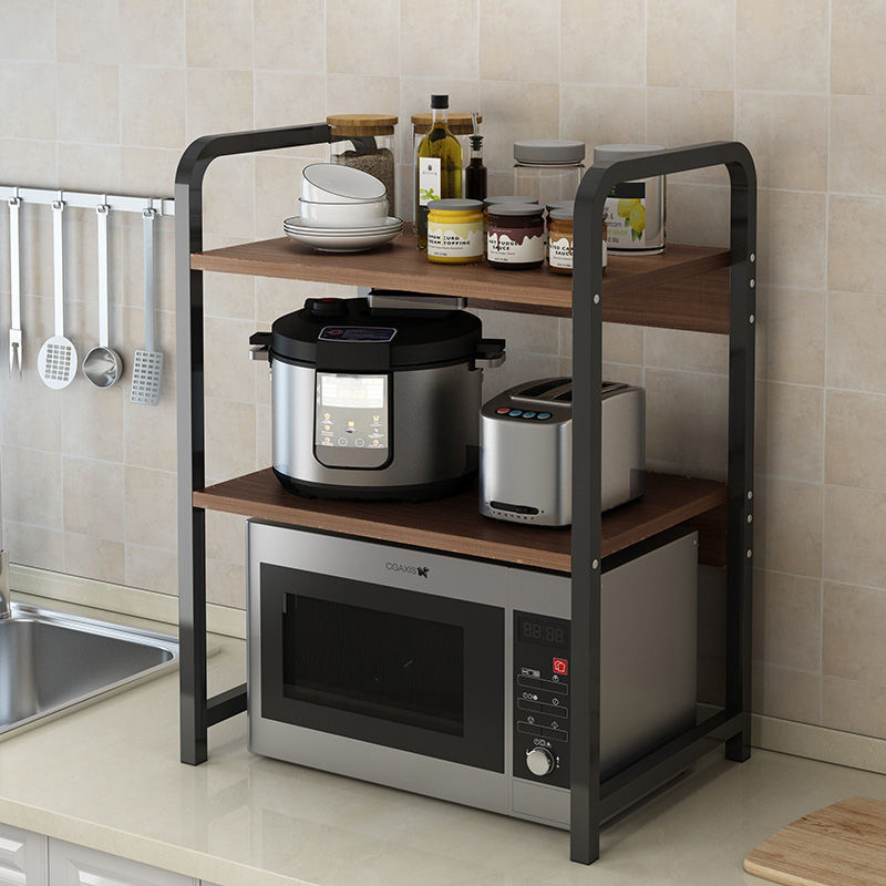 棚の物置棚の台所の台の上の多層の調味料棚の電子レンジの調味料の置物の収納棚のオーブンの代行