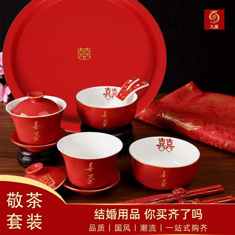 結婚茶器セット結婚祝い用品大全碗箸結婚式改口敬酒陶磁器喜杯喜箸新人敬茶