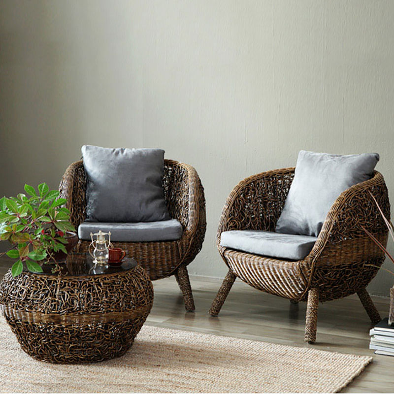 屋外籐椅子セット3点セットベランダテーブル椅子リビングレジャー椅子庭シンプルモダン真籐编み椅子
