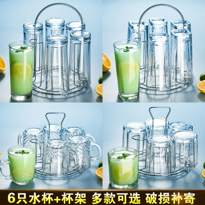 グラス家庭用6つの厚手耐熱鉛フリーガラス泡茶ハンドル付きビール飲料牛乳カップセット