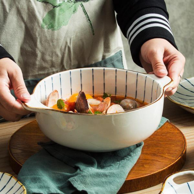 スープ碗の両耳の蓋付きの日本式スープ鉢の大きいスープ鍋の蒸し器のスープの陶磁器の食器の組み合わせの碗は代行します。