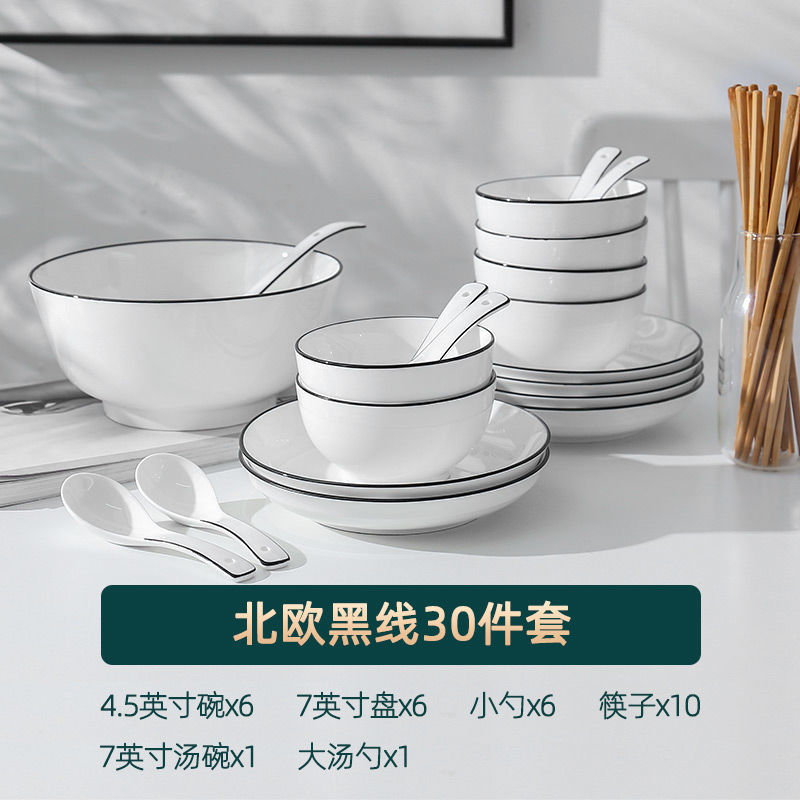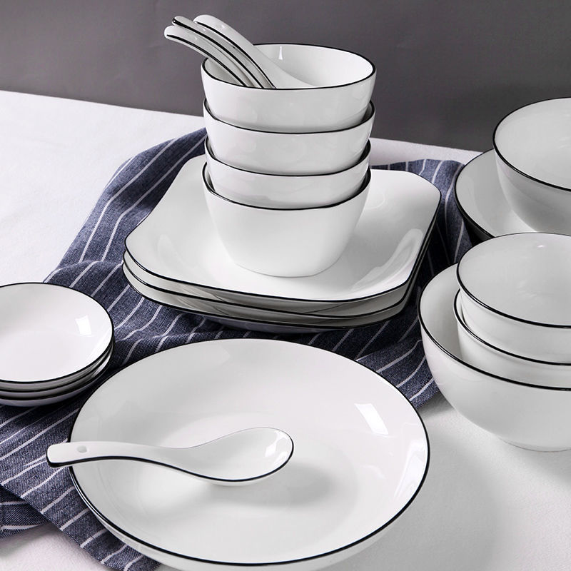家庭用茶碗卸売り食器セット北欧ネットレッドinsヨーロッパ風創意セット黒縁陶磁器食器セット