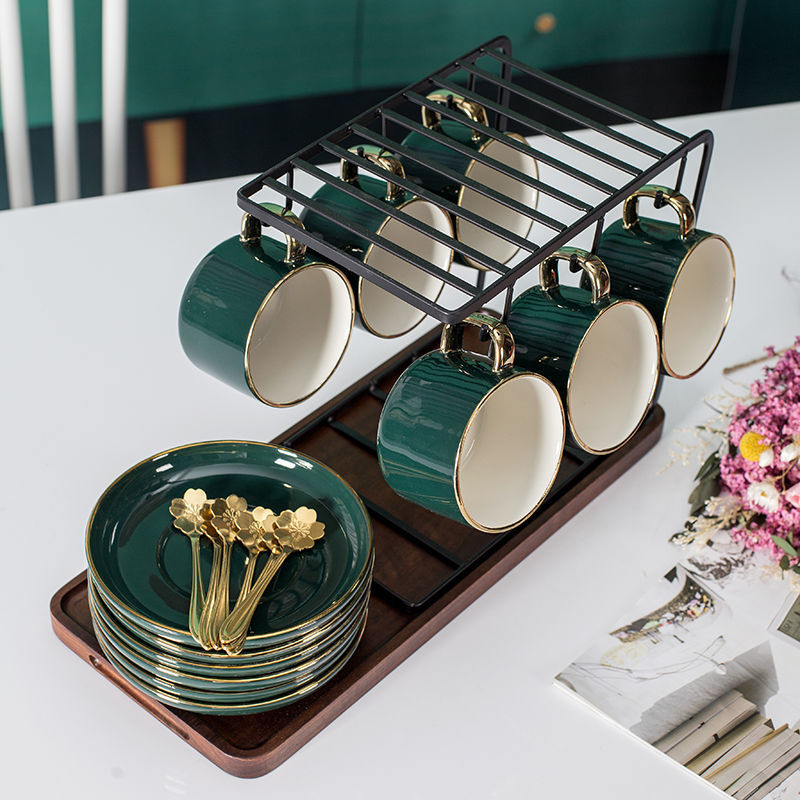 ヨーロッパ式のコーヒーカップの陶磁器のセットの精巧な小さい豪華なネットの赤いコップの家庭用の杯の皿の下のお茶のins風の現代