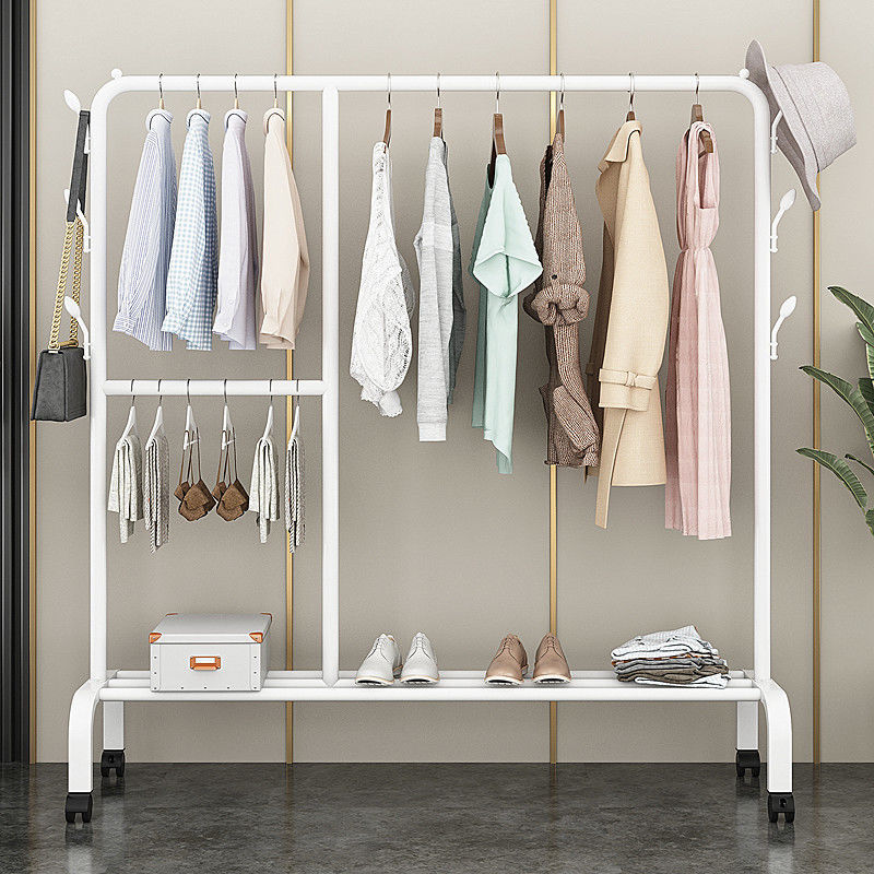 フードラックの床に落ちた家庭用の木製ハンガーの縦型クローゼットの寝室の部屋にバッグを干して収納するフードラック
