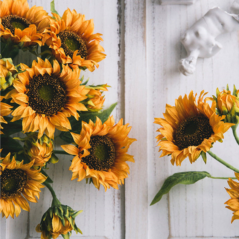 ヒマワリは花の造花を模倣して花束を飾って乾いた花瓶を飾っています。