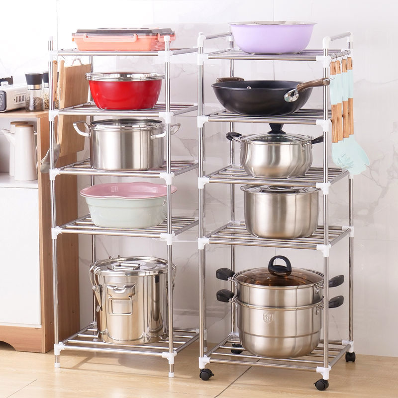 台所の鍋棚の多層の鍋を置く棚の物置棚のワゴン車の新型の床の収納棚の家庭用寮の洗面器