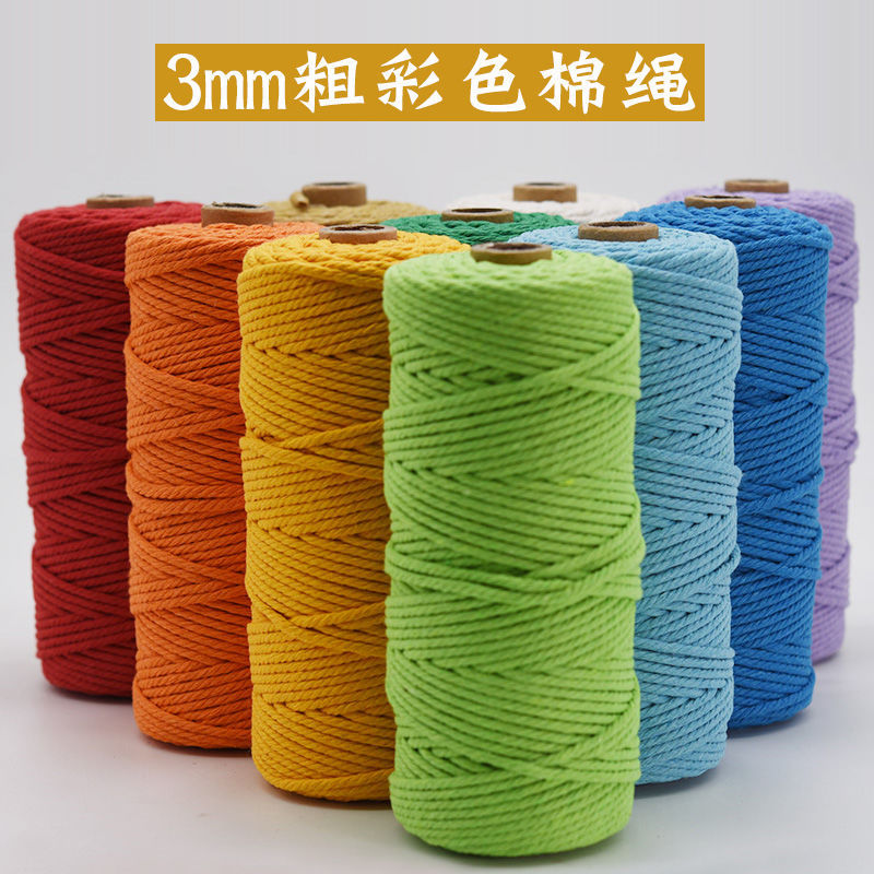 コットンロープ手编みコットンロープ3mmカラーラウンドバンドル羽耐摩耗性ロープ装饰手编みロープ