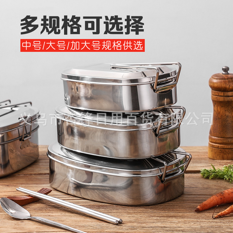 304ステンレス弁当箱蓋付き長方形学生弁当箱単層サラリーマン軍事訓練食堂蒸し弁当箱二重