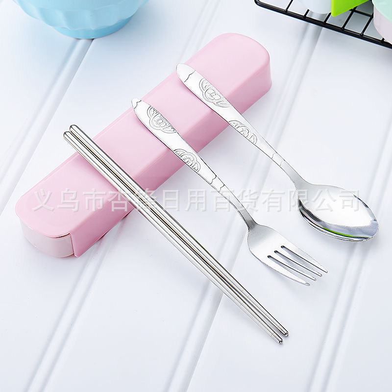 クリエイティブかわいいステンレス携帯食器セット箸携帯三点セットフォークスプーン箸箱学生