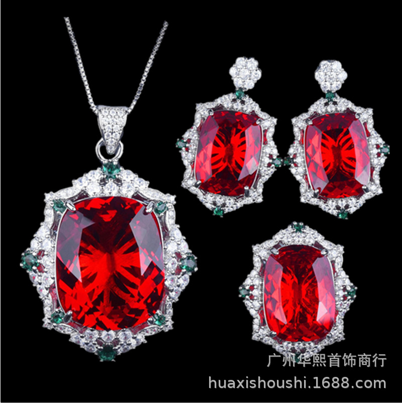 気質ファッション先祖母緑ペンダントネックレスは鳩の赤い宝石のピアスをはめ込んでいます。