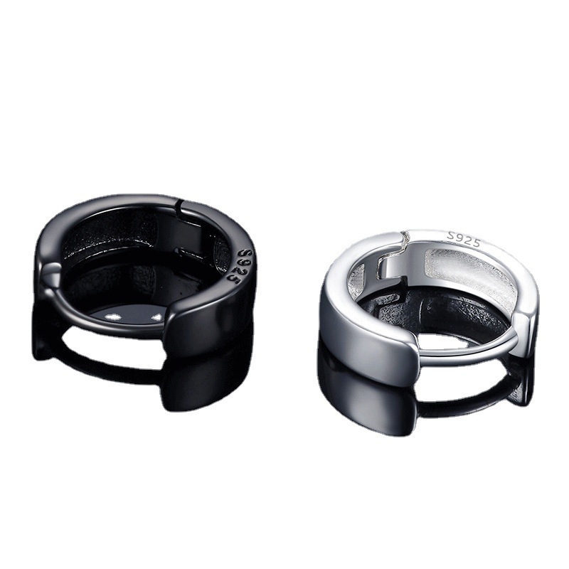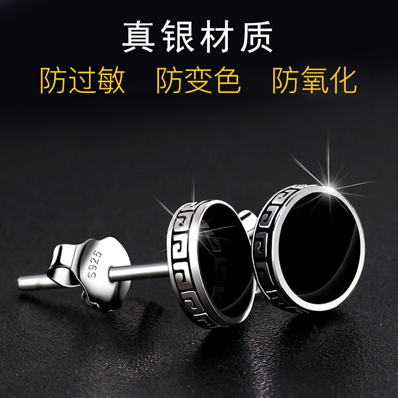 純銀イヤリング2019新型潮黒ピアス男性韓国版潮男耳クリップ女性ヒップホップピアス
