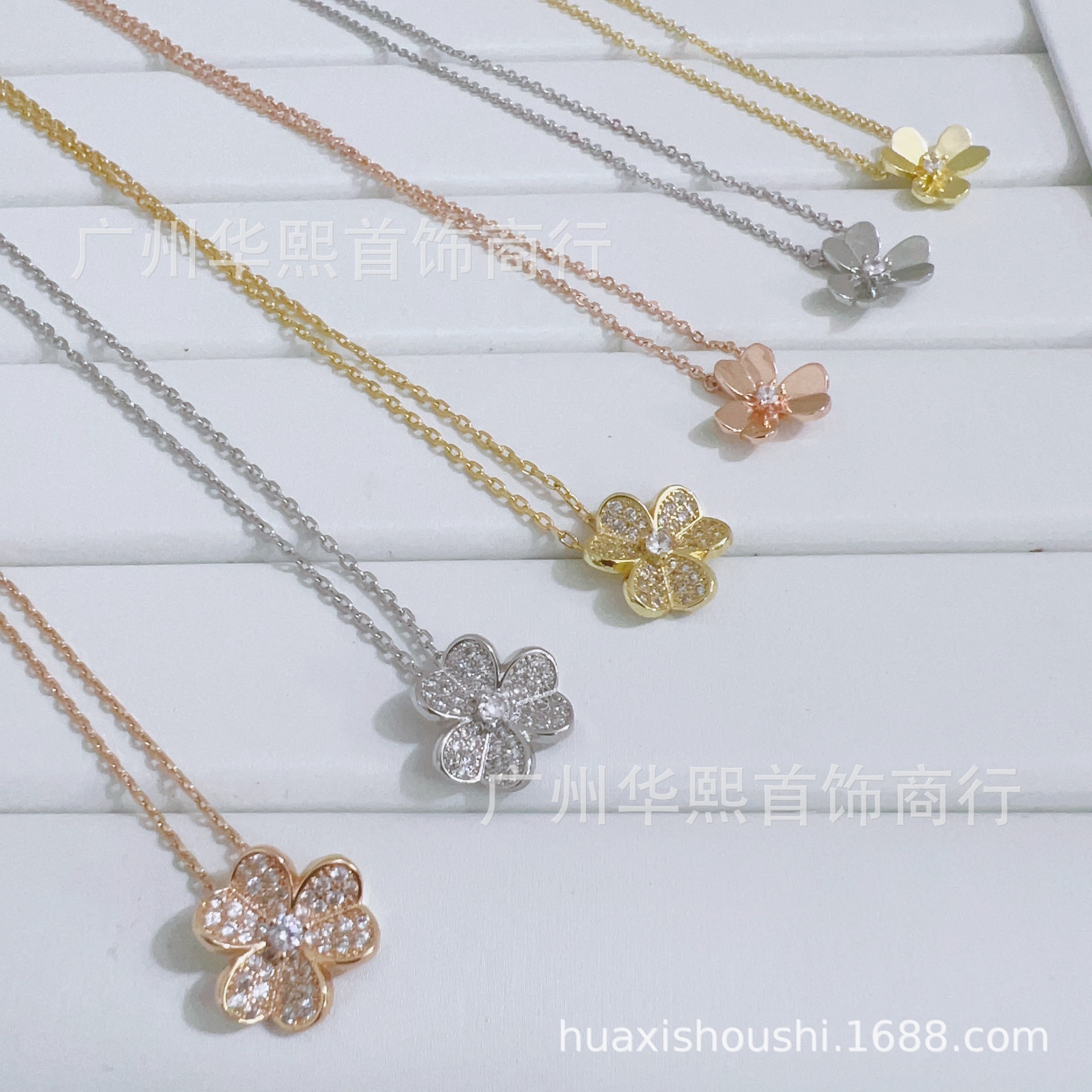 赤い本の同じタイプの黄金色の韓国版の四つ葉の草はいっぱいダイヤモンドのバラの金の簡単な幸運の草を満たして18kの本物の金のネックレスをめっきします。