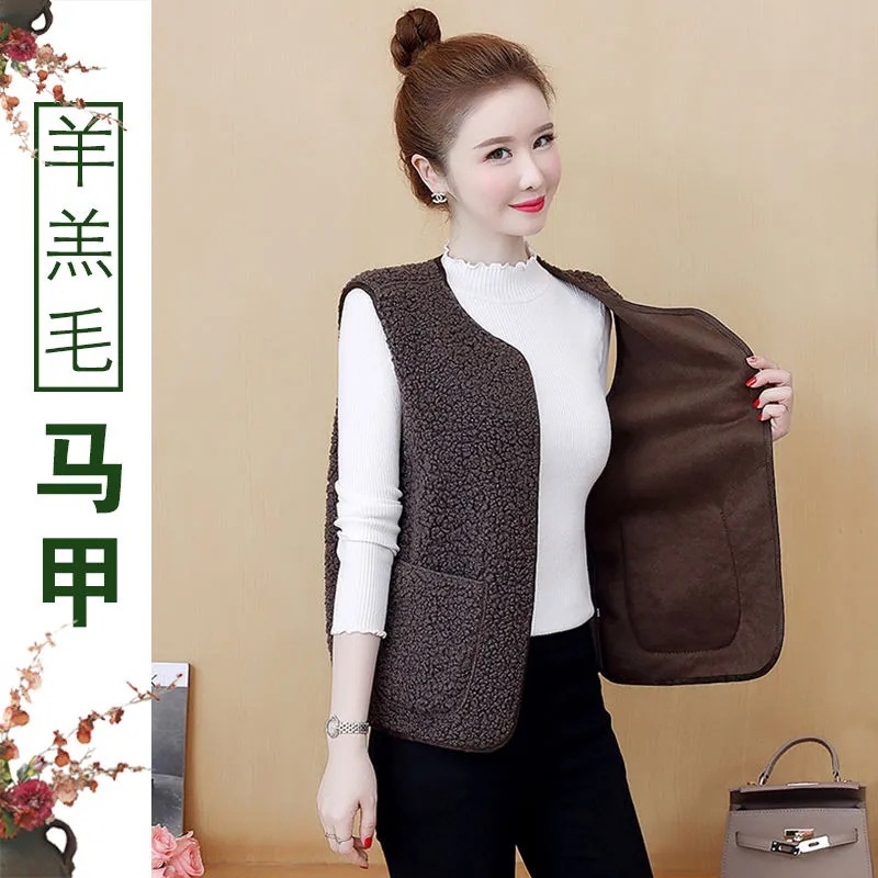 レディースベスト20232新型子羊の毛羽春と秋の襟のない女性の肩の外にベストの馬のジャケットを着ます。